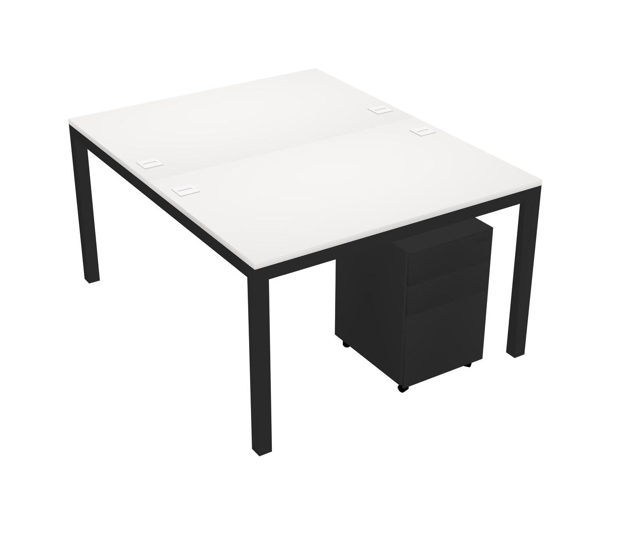 White Shared Rectangular Office Desk With Metal Mobile Drawers For 2 Persons