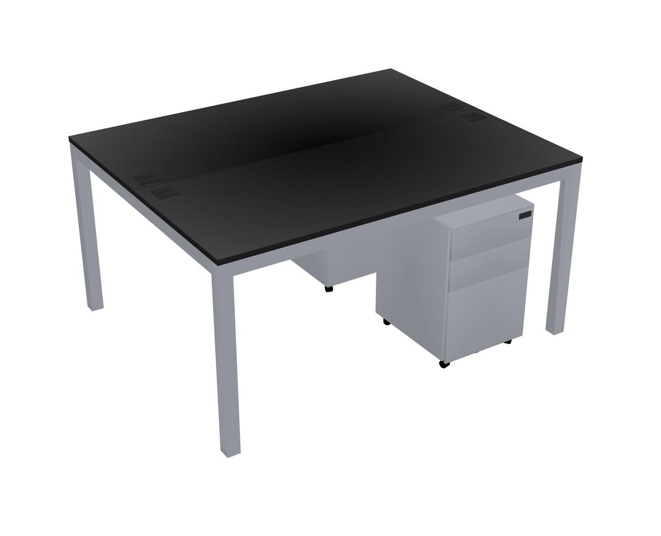 Black Shared Rectangular Office Desk With Metal Mobile Drawers For 2 Persons