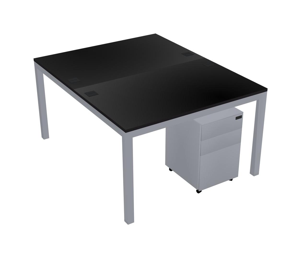 Black Shared Rectangular Office Desk With Metal Mobile Drawers For 2 Persons