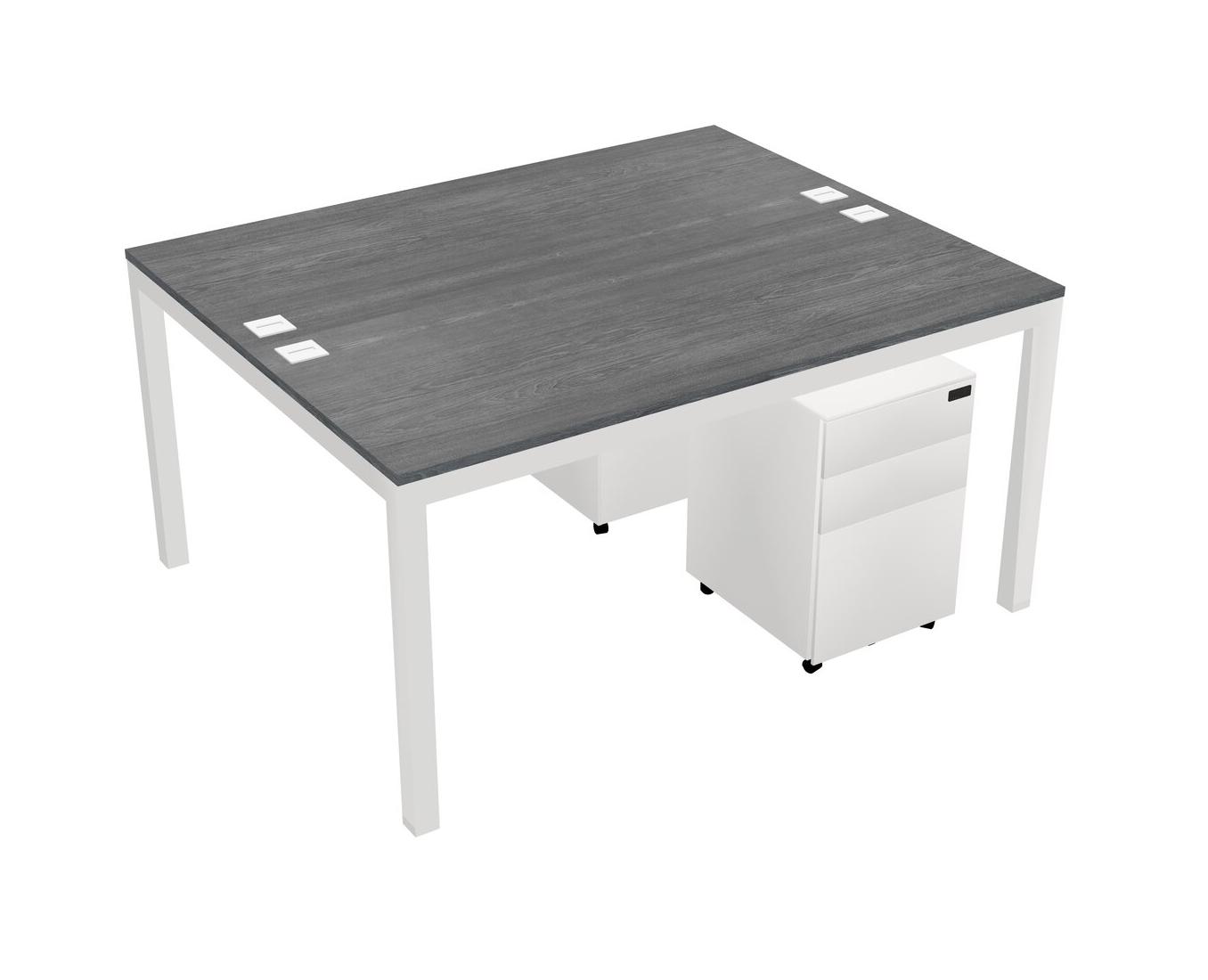 Grey Shared Rectangular Office Desk With Metal Mobile Drawers For 2 Persons