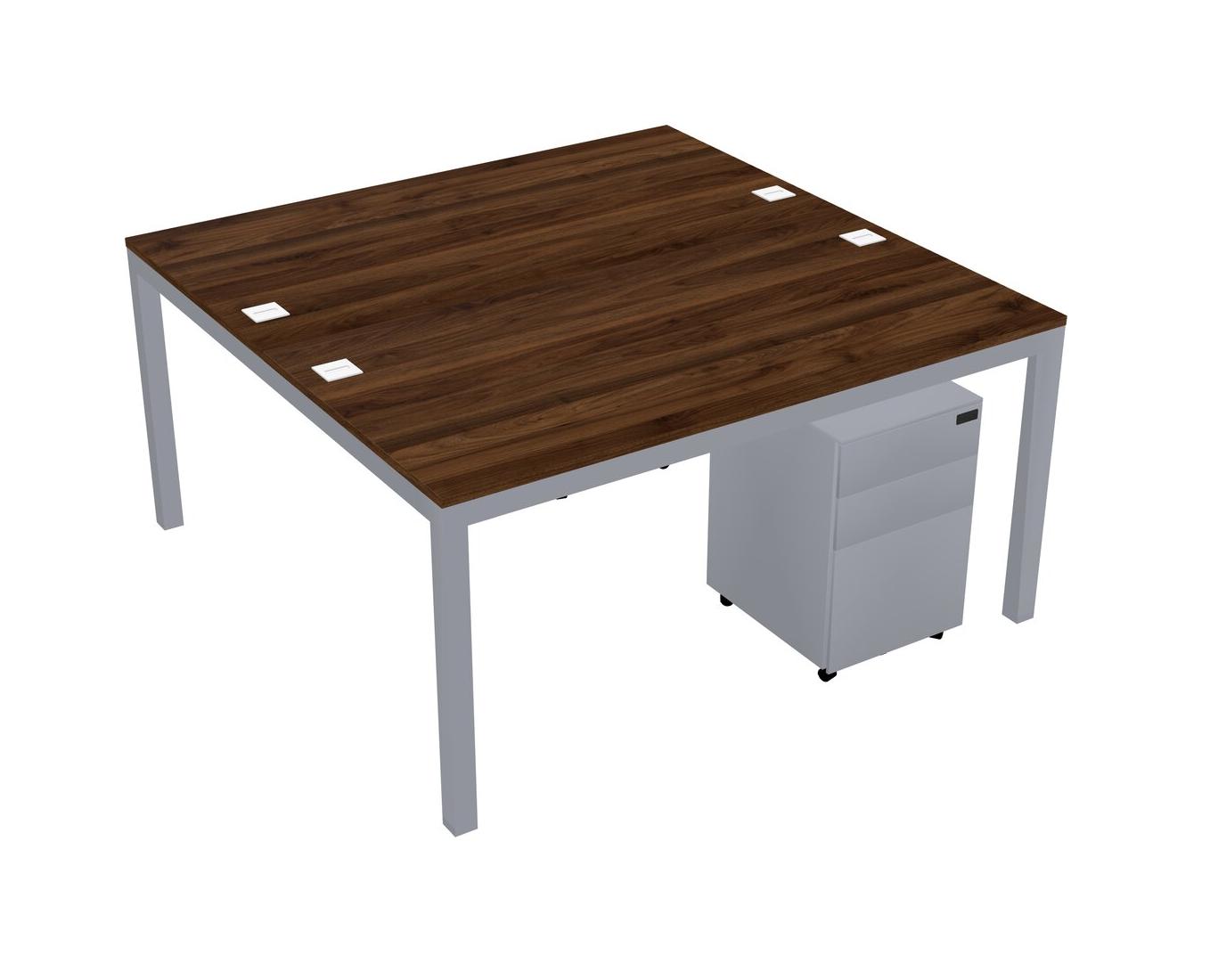 Columbia Walnut Shared Rectangular Office Desk With Metal Mobile Drawers For 2 Persons