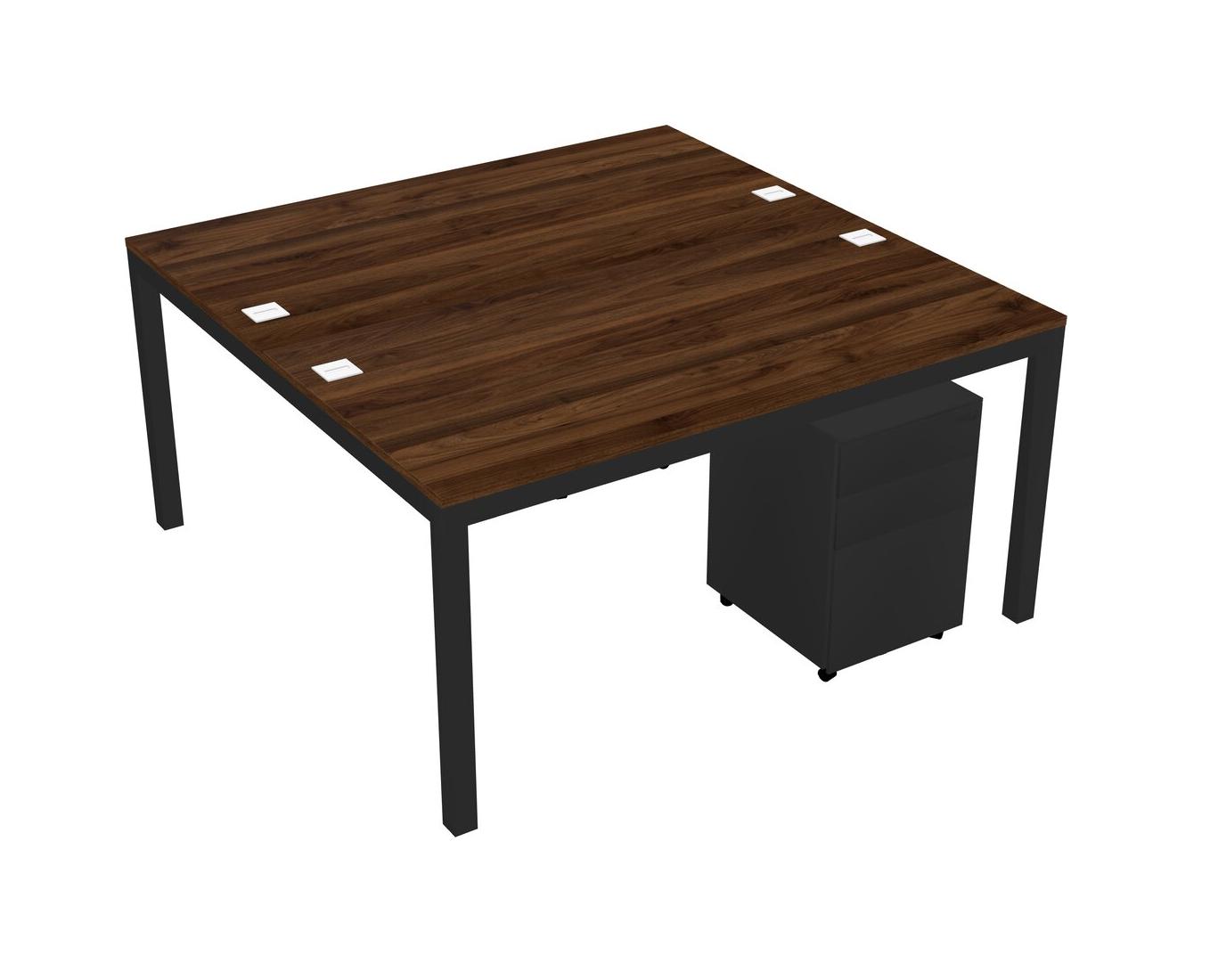 Columbia Walnut Shared Rectangular Office Desk With Metal Mobile Drawers For 2 Persons
