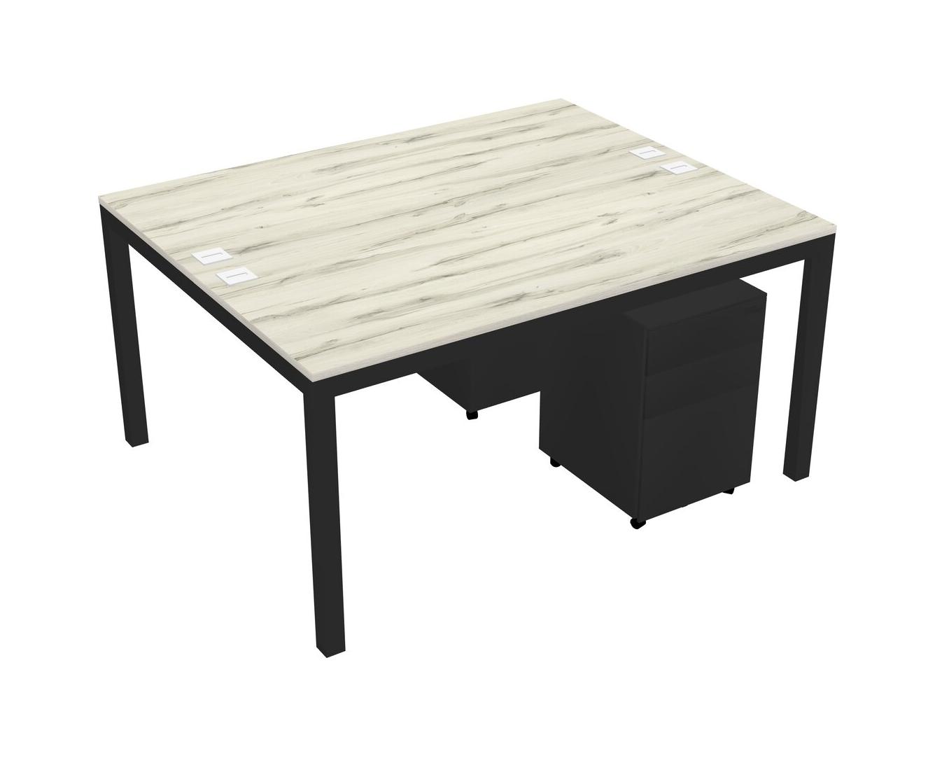 Heinne Holz Shared Rectangular Office Desk With Metal Mobile Drawers For 2 Persons