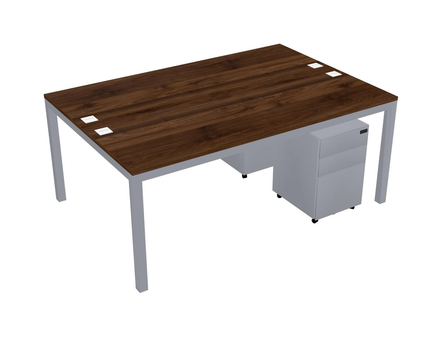 Columbia Walnut Shared Rectangular Office Desk With Metal Mobile Drawers For 2 Persons