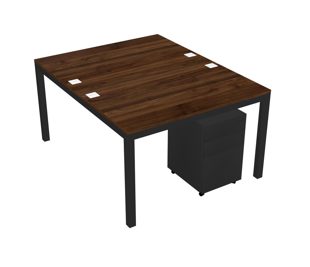 Columbia Walnut Shared Rectangular Office Desk With Metal Mobile Drawers For 2 Persons