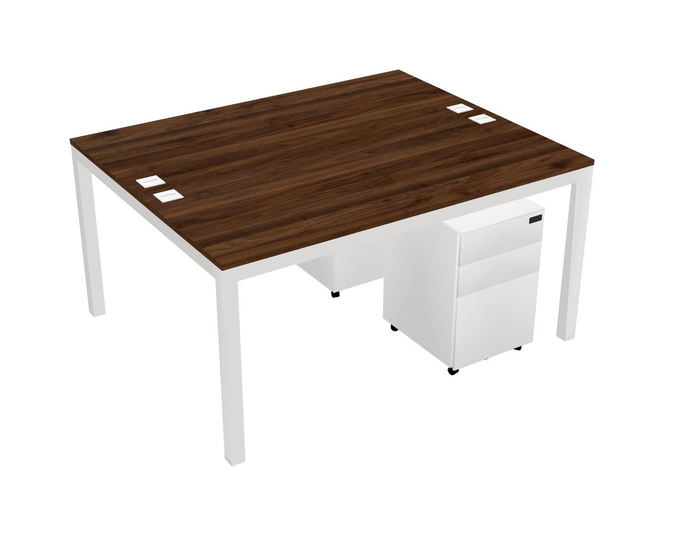Columbia Walnut Shared Rectangular Office Desk With Metal Mobile Drawers For 2 Persons