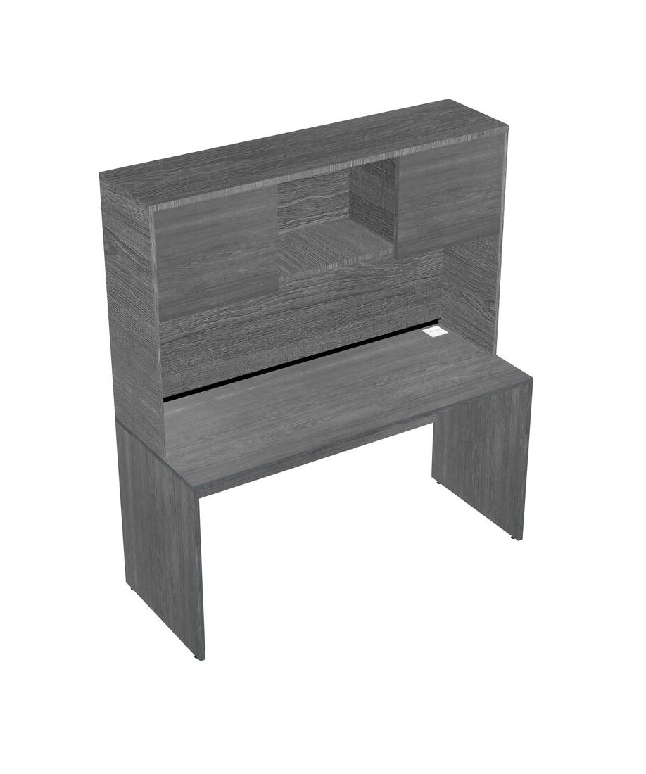 Grey Rectangular Office Desk And Grey Hutch
