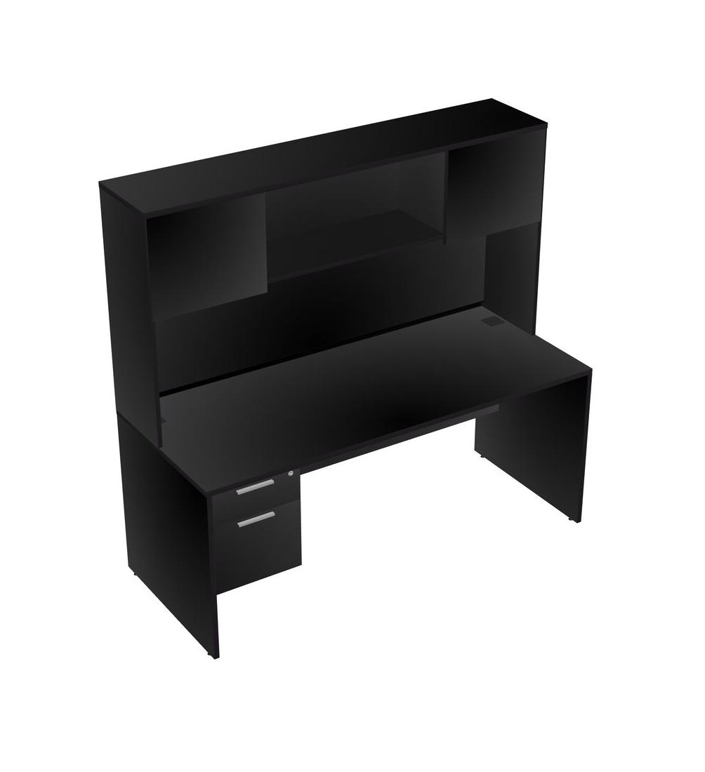 Black Rectangular Office Desk Plus Black Hanging Drawers And Black Hutch