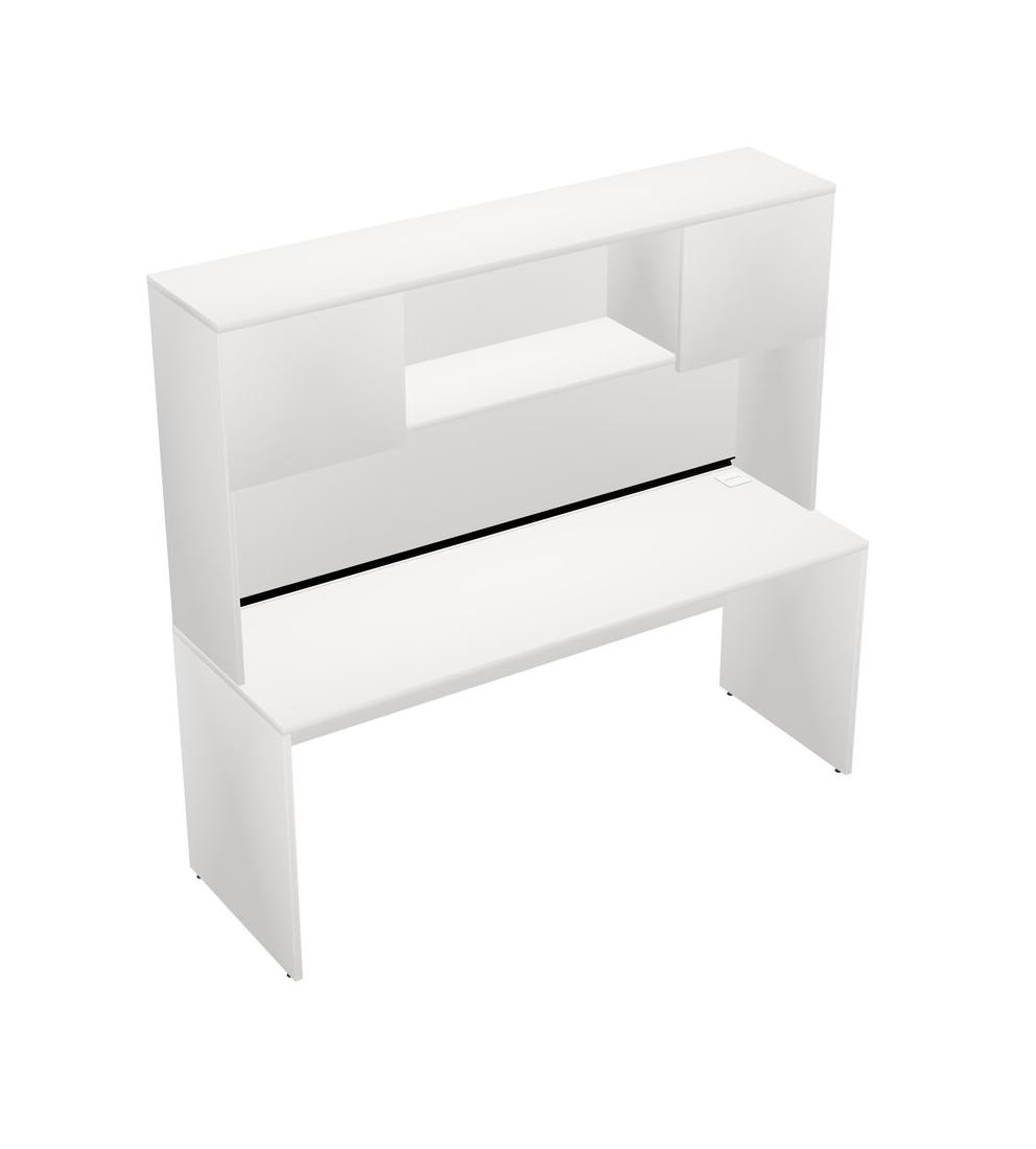 White Rectangular Office Desk And White Hutch