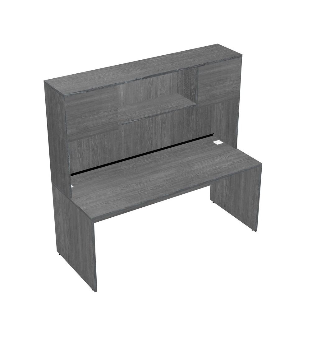 Grey Rectangular Office Desk And Grey Hutch