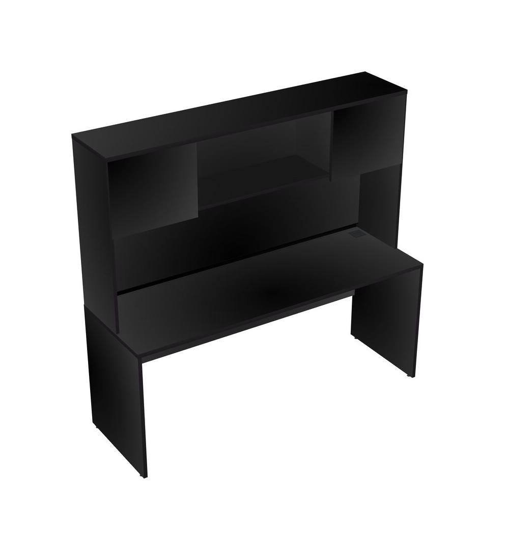 Black Rectangular Office Desk And Black Hutch