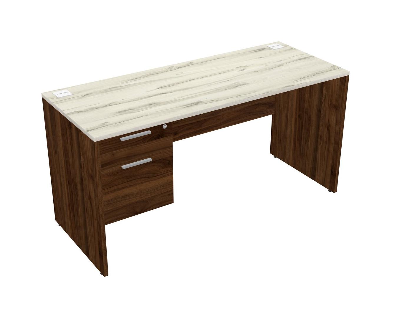 Heinne Holz Rectangular Office Desk Plus Columbia Walnut Hanging Drawers