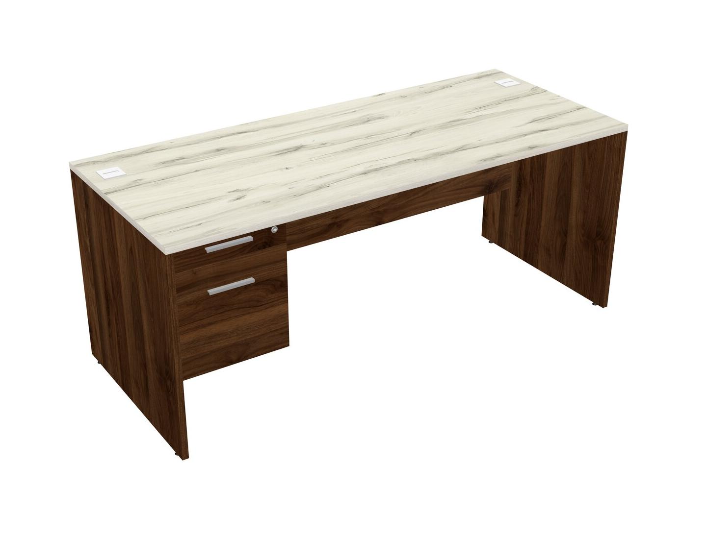 Heinne Holz Rectangular Office Desk Plus Columbia Walnut Hanging Drawers