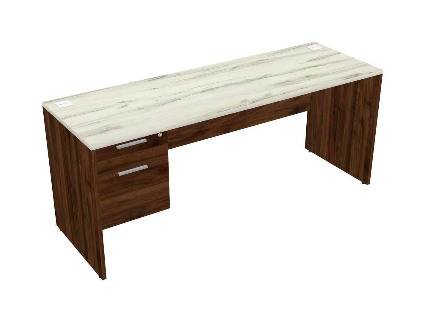 Heinne Holz Rectangular Office Desk Plus Columbia Walnut Hanging Drawers