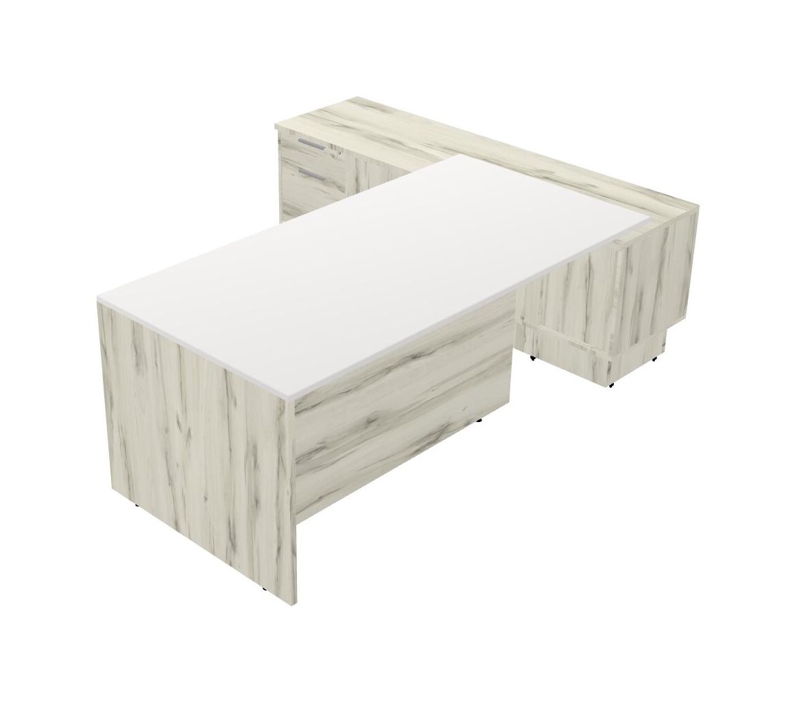 White Modern Executive Desk With Low Sliding Door Cabinet With Built-in Drawers