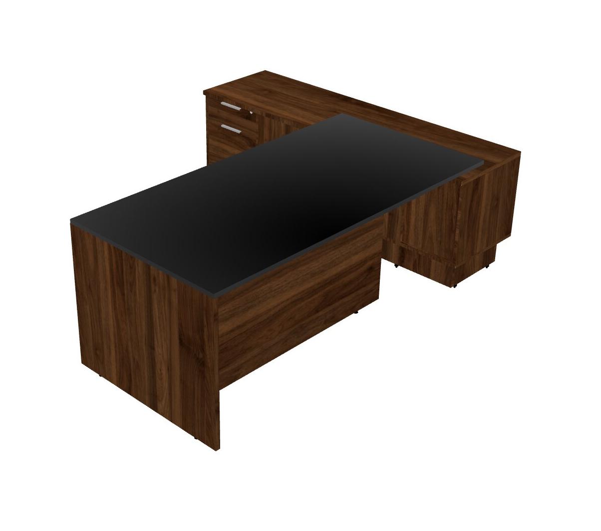 Black Modern Executive Desk With Low Sliding Door Cabinet With Built-in Drawers
