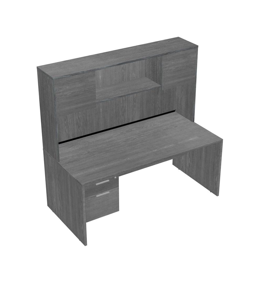 Grey Rectangular Office Desk Plus Grey Hanging Drawers And Grey Hutch