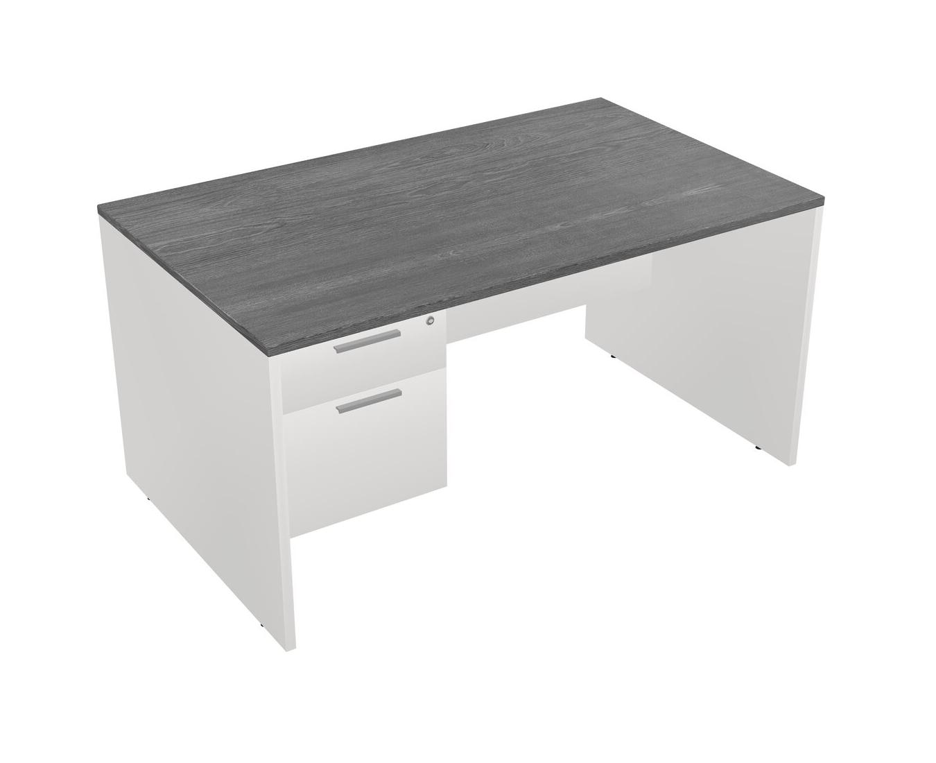 Grey Rectangular Office Desk Plus White Hanging Drawers