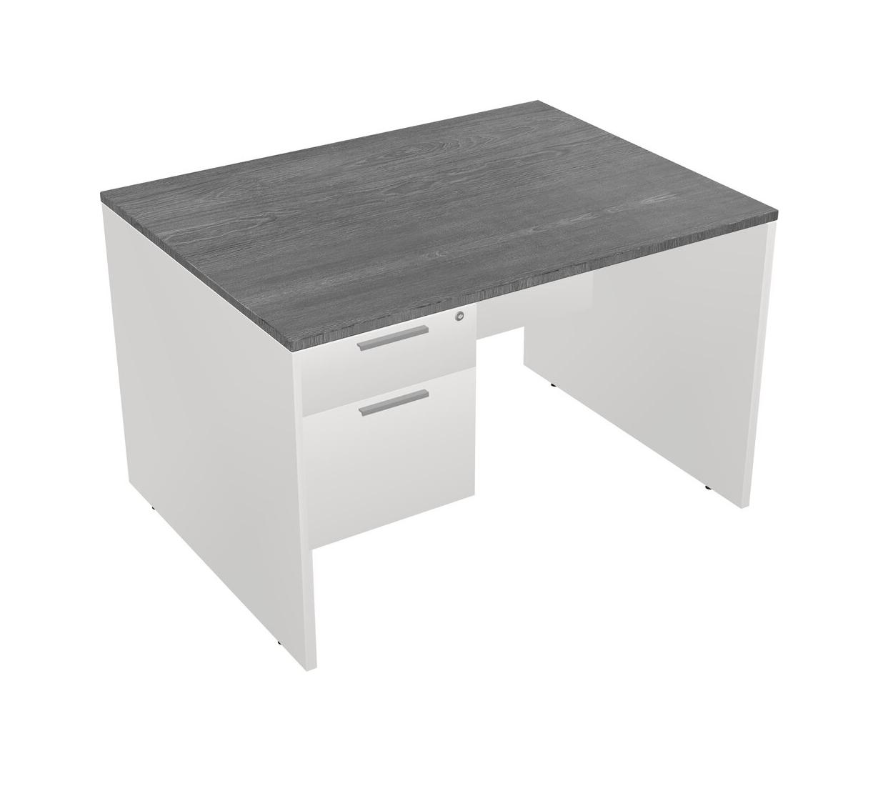 Grey Rectangular Office Desk Plus White Hanging Drawers