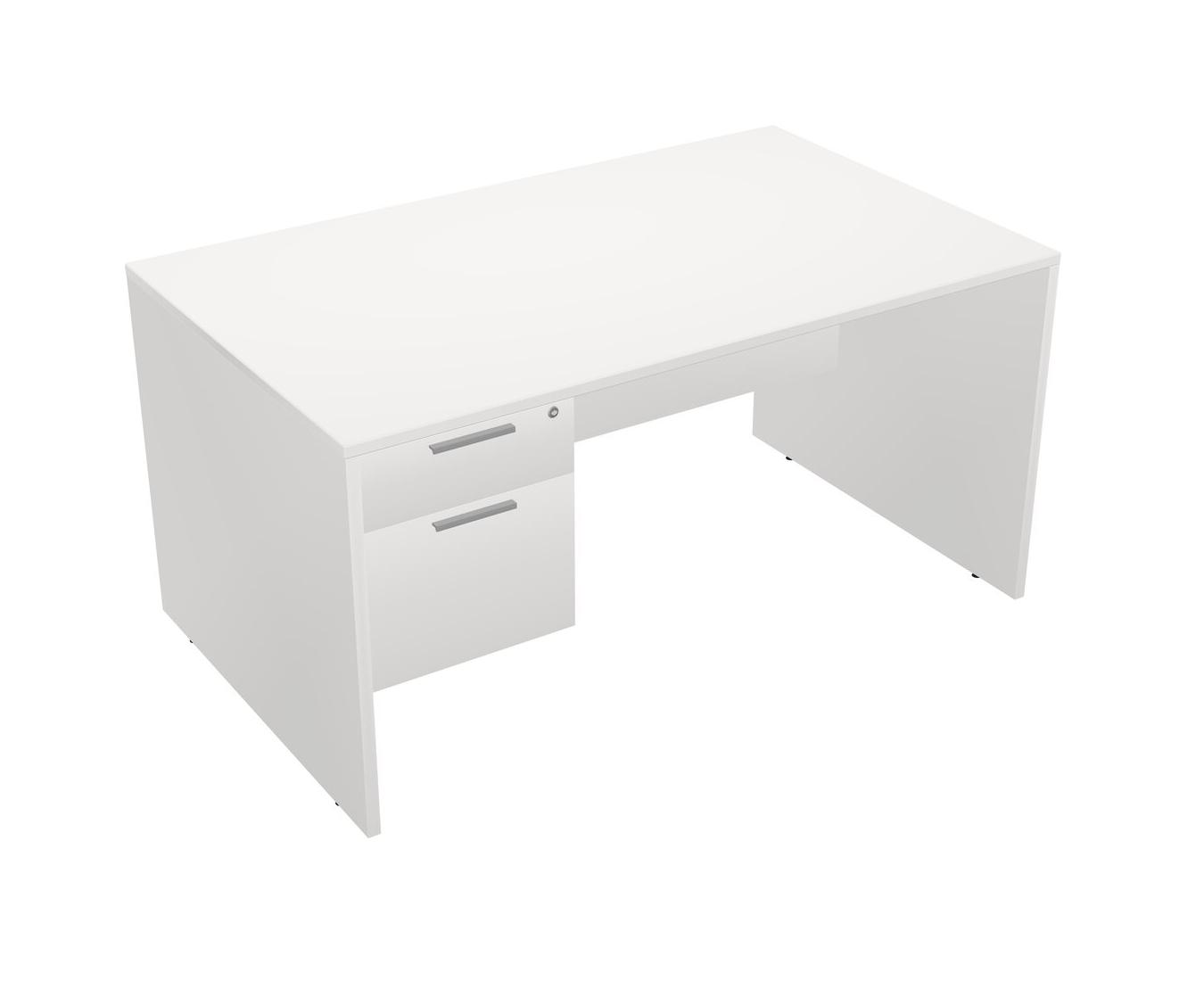 White Rectangular Office Desk Plus White Hanging Drawers