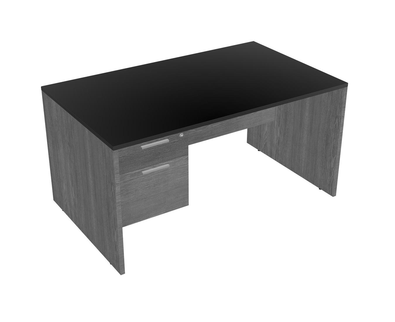 Black Rectangular Office Desk Plus Grey Hanging Drawers