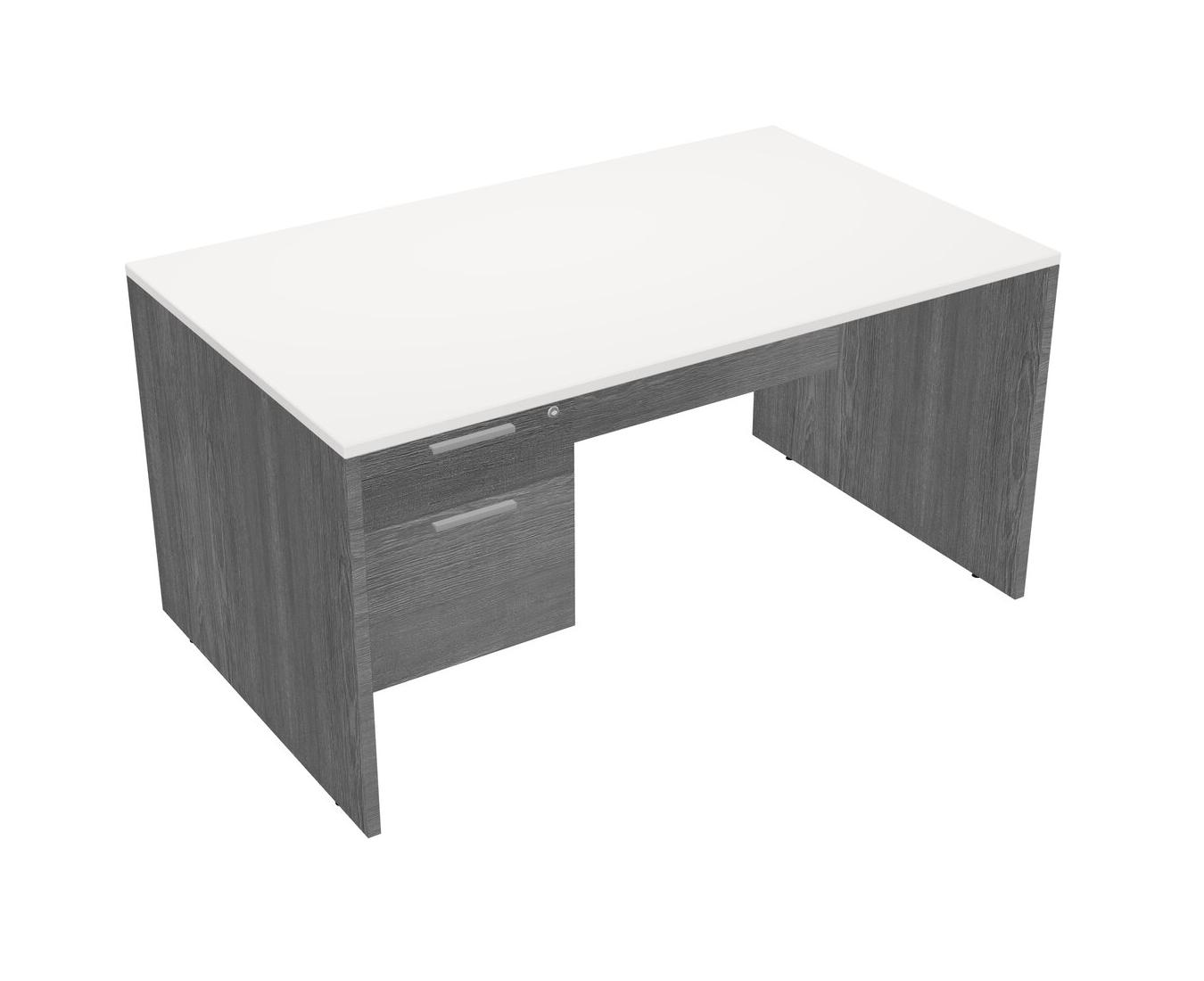 White Rectangular Office Desk Plus Grey Hanging Drawers