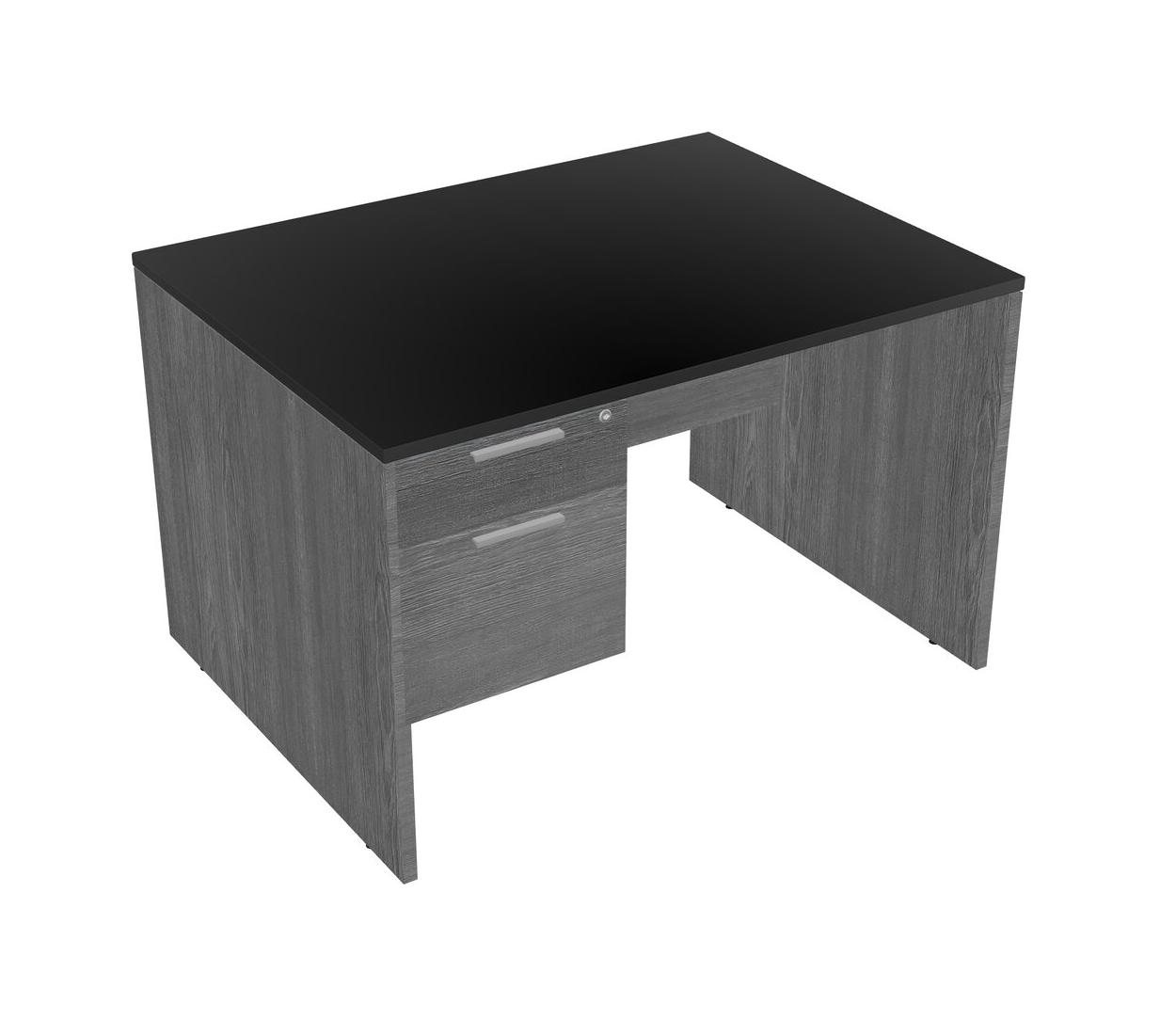 Black Rectangular Office Desk Plus Grey Hanging Drawers