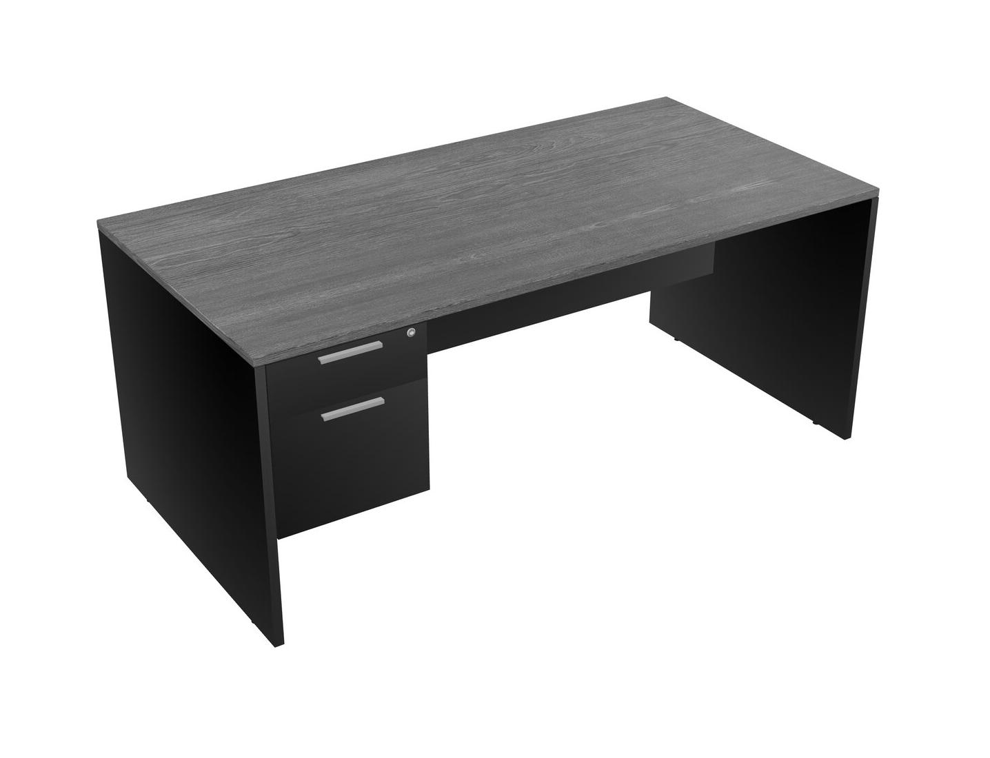 Grey Rectangular Office Desk Plus Black Hanging Drawers