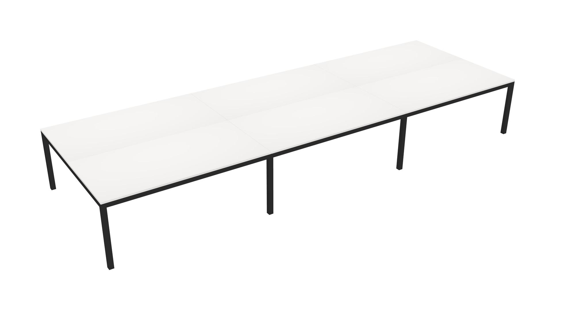 White Shared Rectangular Office Desk For 6 Persons
