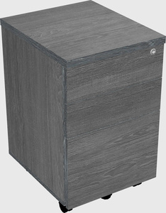 Slick Grey L-shaped Office Desk With Cabinet