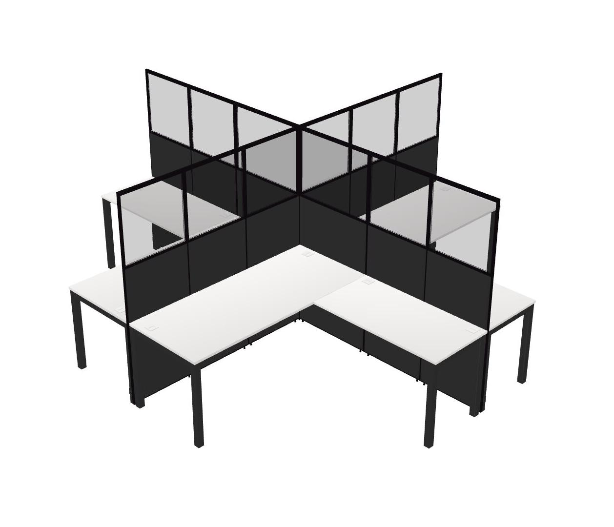 White L-shaped Quad Office Cubicles