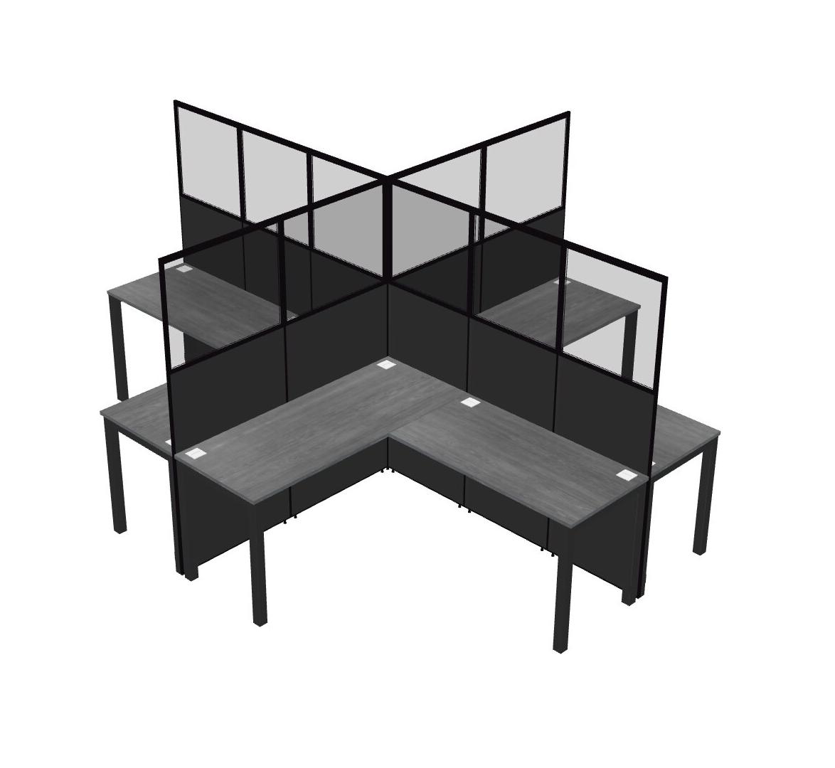Grey L-shaped Quad Office Cubicles