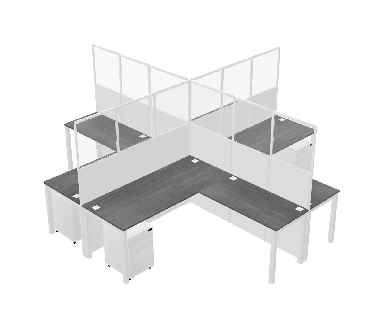 Grey L-shaped Quad Office Cubicles Mobile Drawers