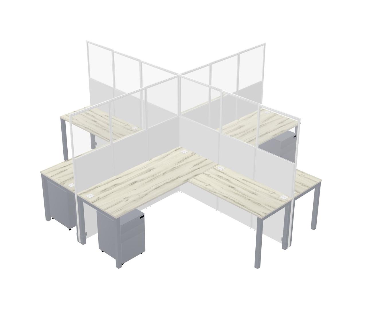 Heinne Holz L-shaped Quad Office Cubicles Mobile Drawers