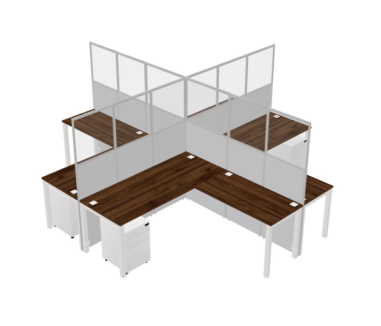 Columbia Walnut L-shaped Quad Office Cubicles Mobile Drawers