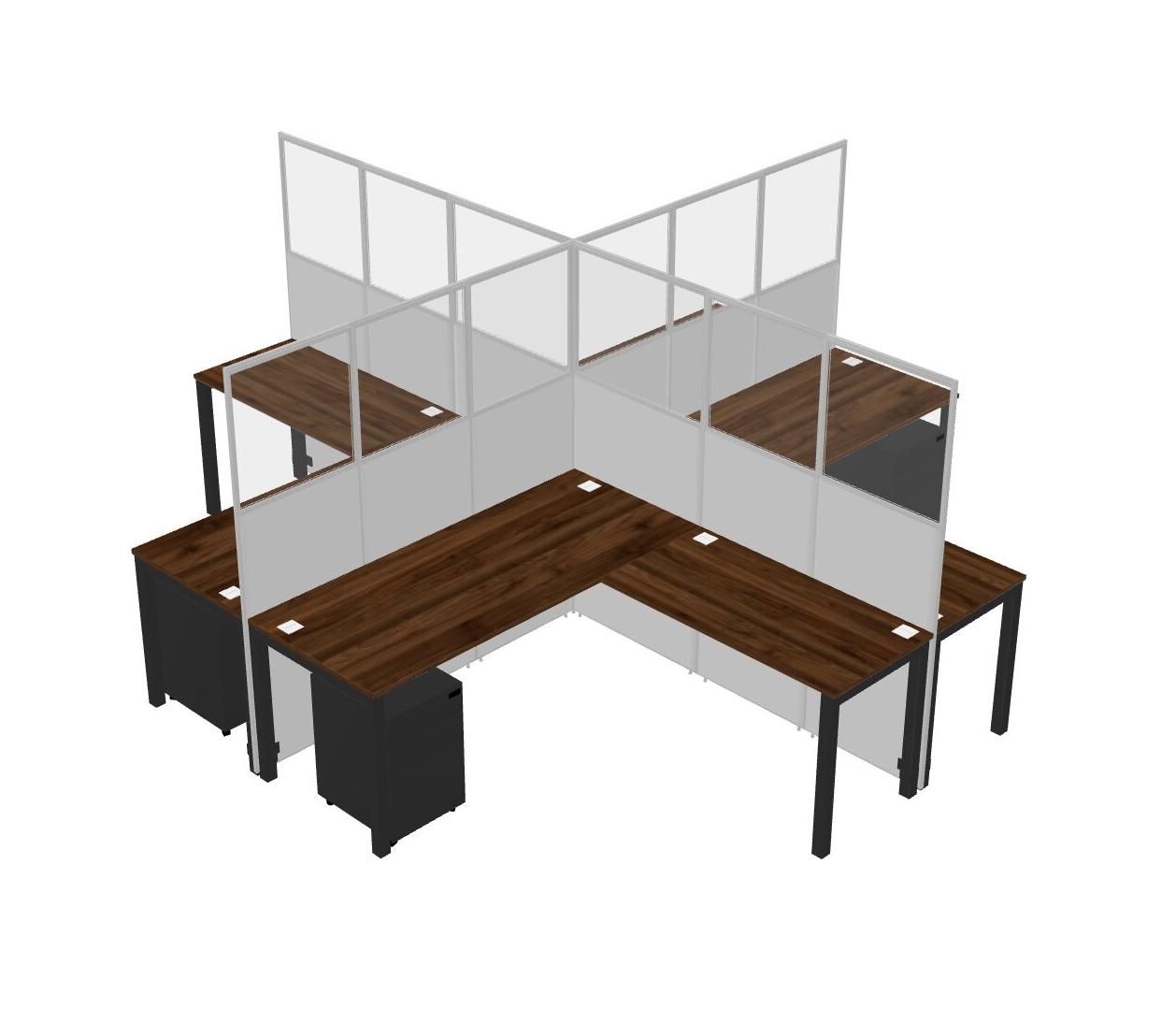 Columbia Walnut L-shaped Quad Office Cubicles Mobile Drawers