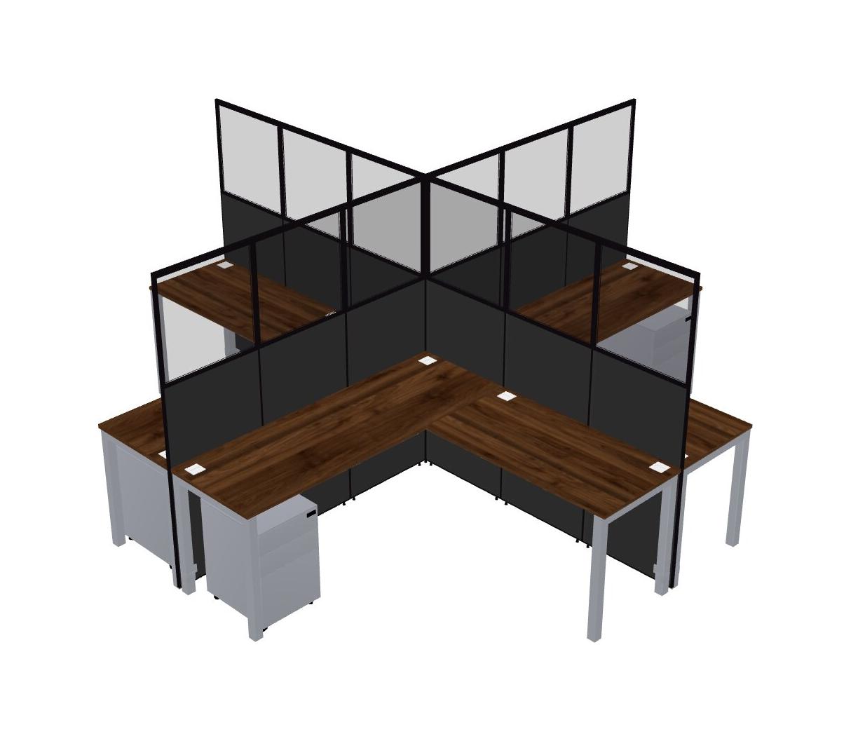 Columbia Walnut L-shaped Quad Office Cubicles Mobile Drawers