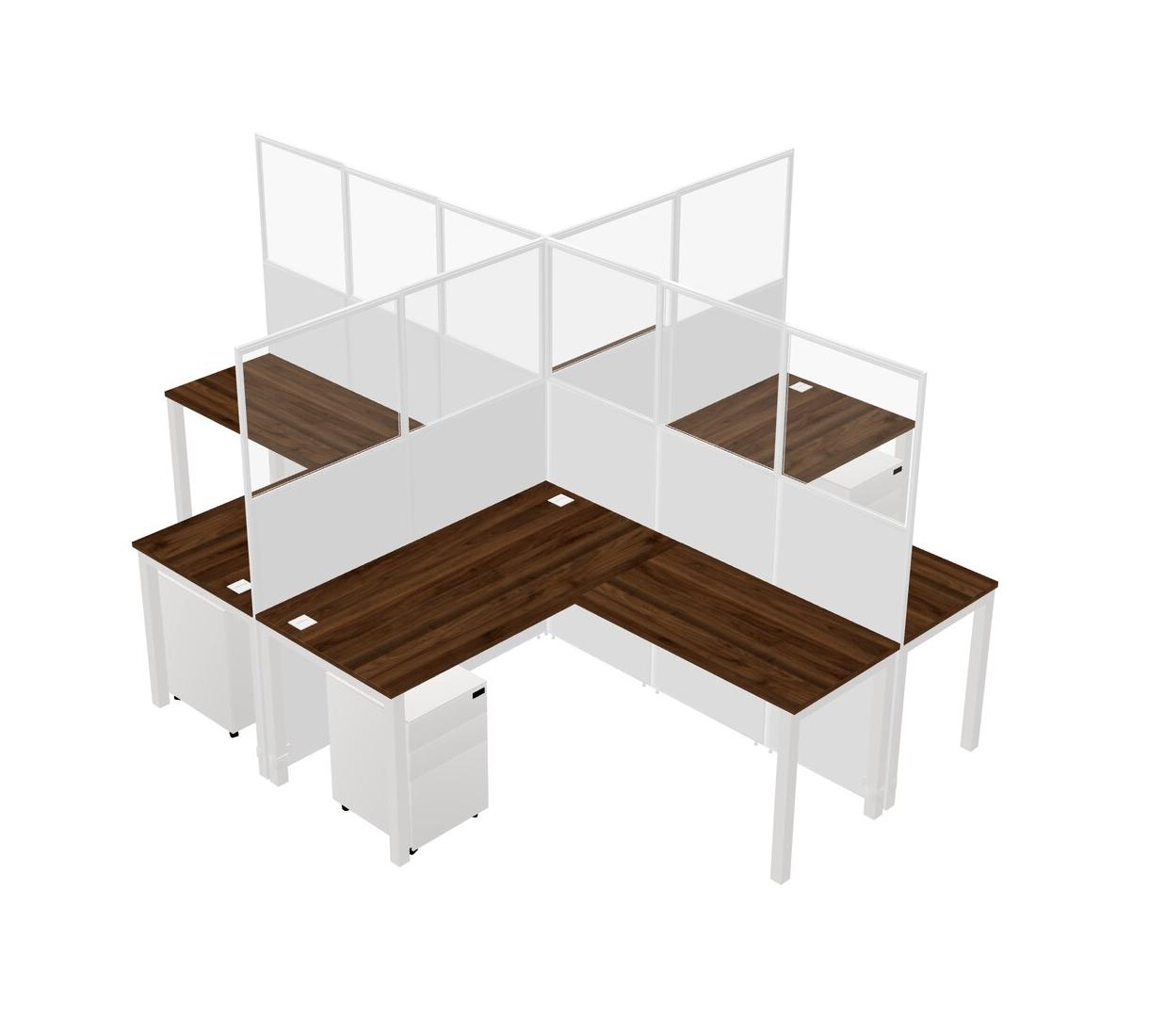 Columbia Walnut L-shaped Quad Office Cubicles Mobile Drawers