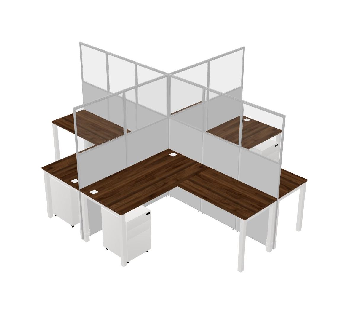 Columbia Walnut L-shaped Quad Office Cubicles Mobile Drawers