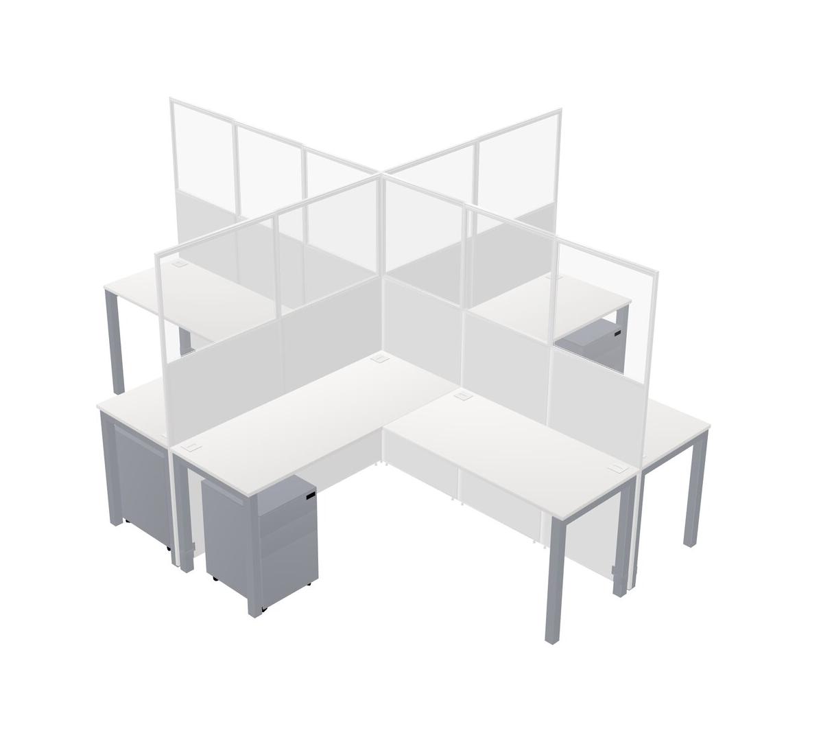 White L-shaped Quad Office Cubicles Mobile Drawers