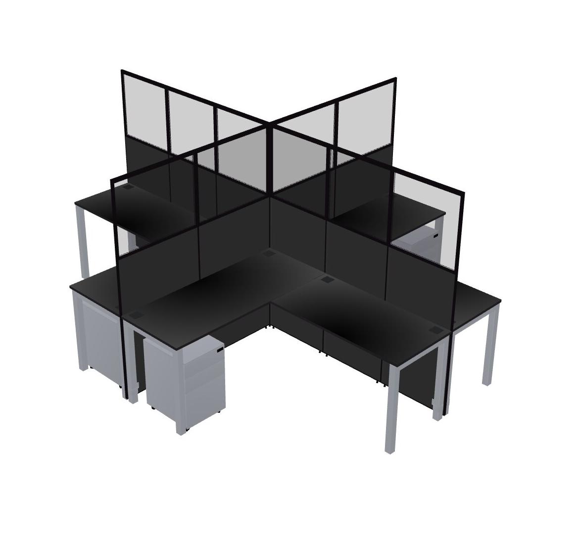Black L-shaped Quad Office Cubicles Mobile Drawers