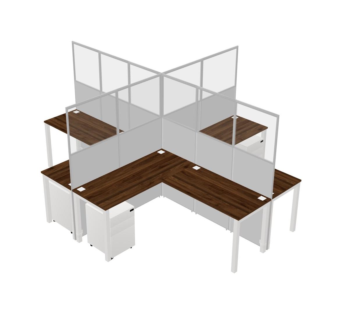 Columbia Walnut L-shaped Quad Office Cubicles Mobile Drawers