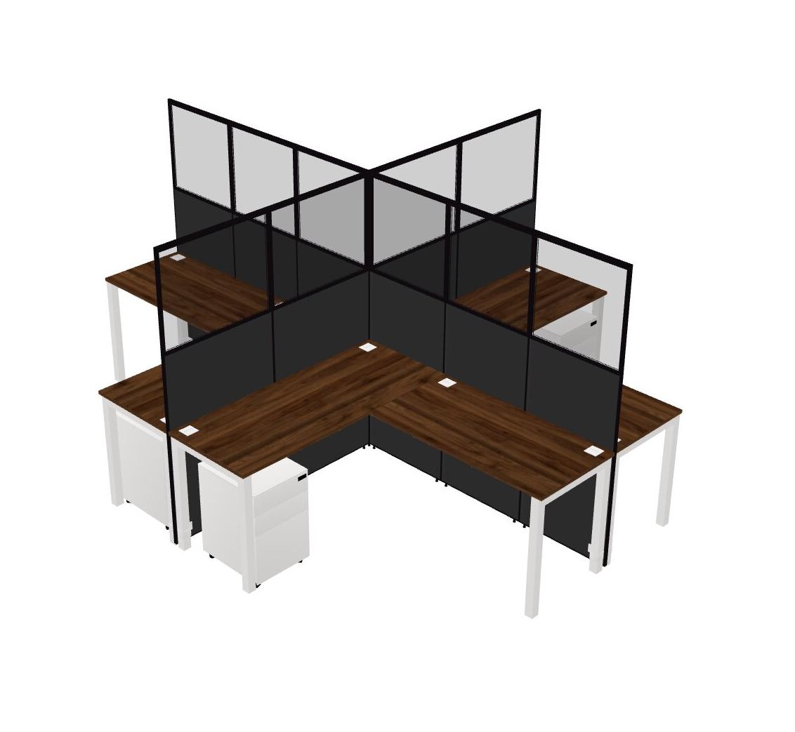 Columbia Walnut L-shaped Quad Office Cubicles Mobile Drawers