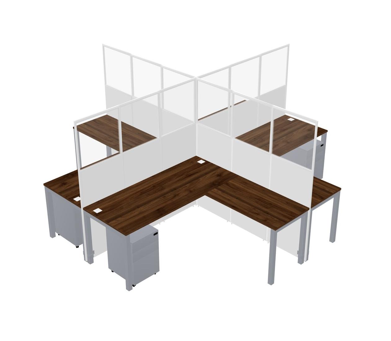Columbia Walnut L-shaped Quad Office Cubicles Mobile Drawers