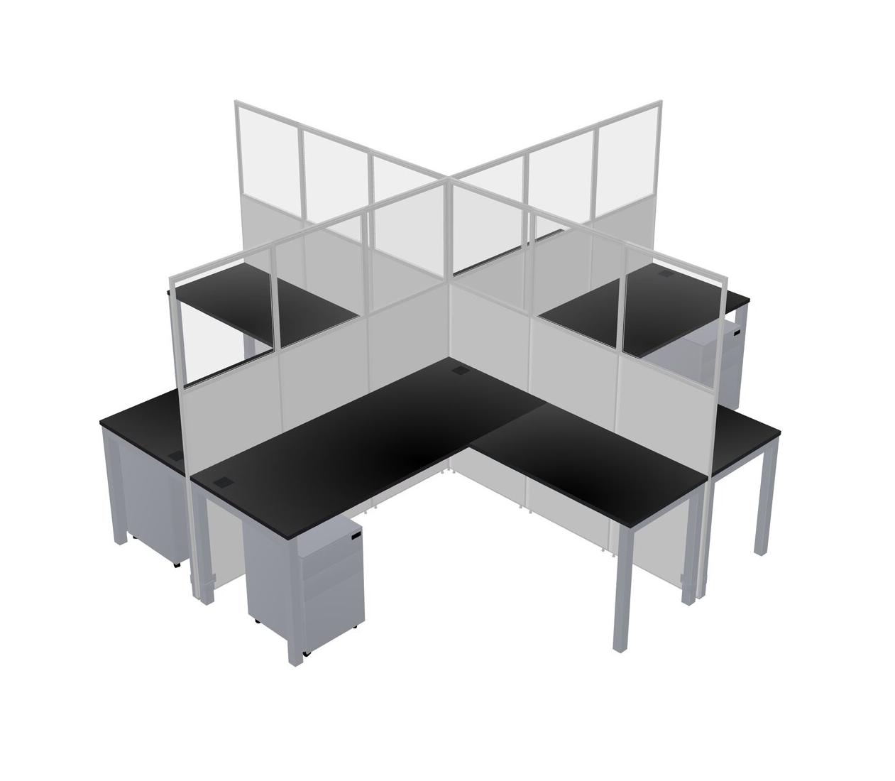 Black L-shaped Quad Office Cubicles Mobile Drawers