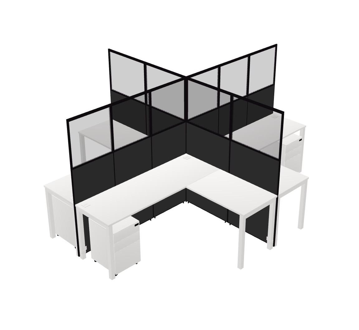 White L-shaped Quad Office Cubicles Mobile Drawers
