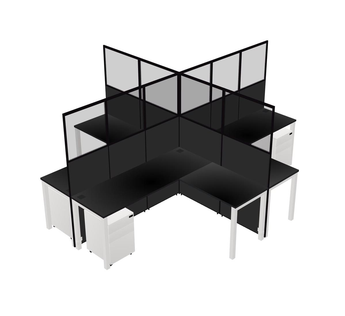 Black L-shaped Quad Office Cubicles Mobile Drawers