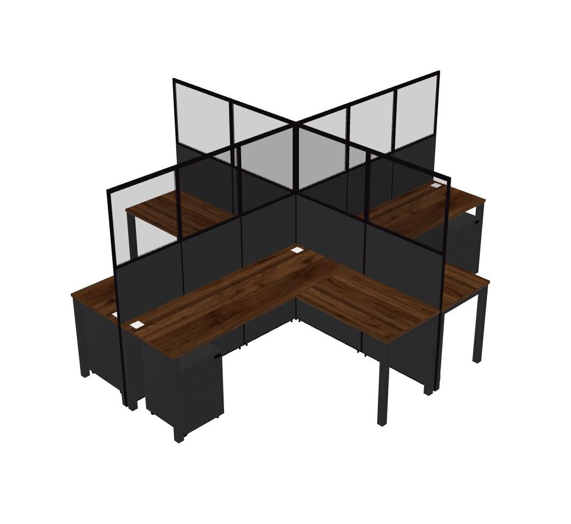 Columbia Walnut L-shaped Quad Office Cubicles Mobile Drawers