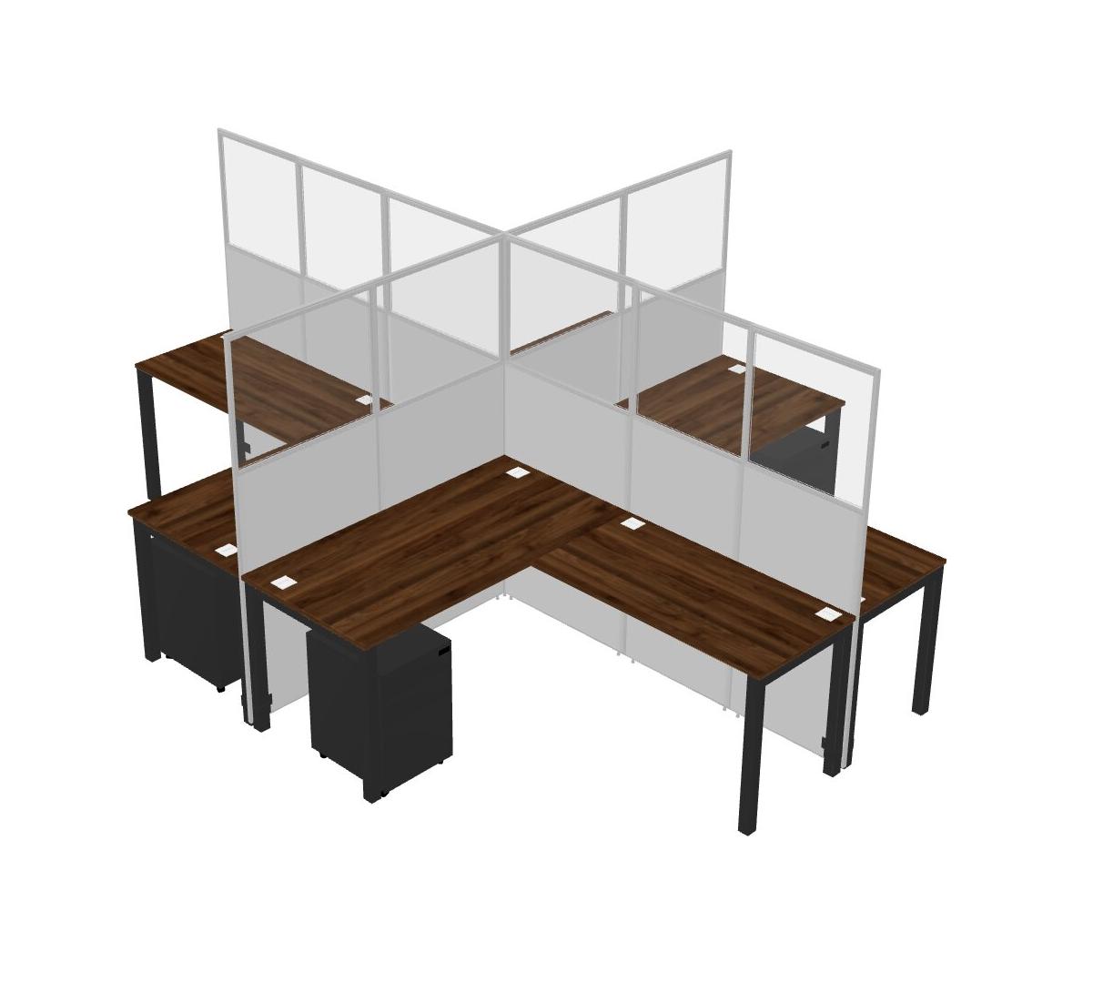 Columbia Walnut L-shaped Quad Office Cubicles Mobile Drawers