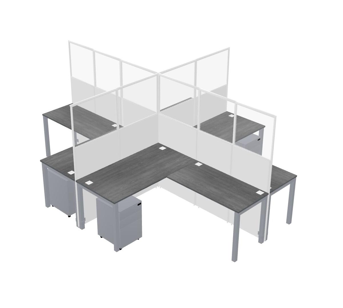 Grey L-shaped Quad Office Cubicles Mobile Drawers